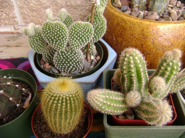 Below is a very interesting "fairy castle" cacti with all kinds of off-shoots, and the Rhipsalis is in the foreground.